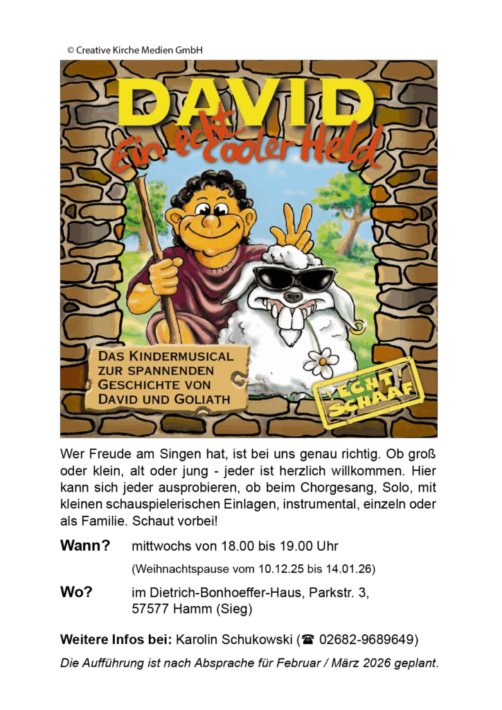 Diverses | Gottesdienste | Jugendzentrum Macht mit! Kindermusical „DAVID“ 12. November 2025 von admin